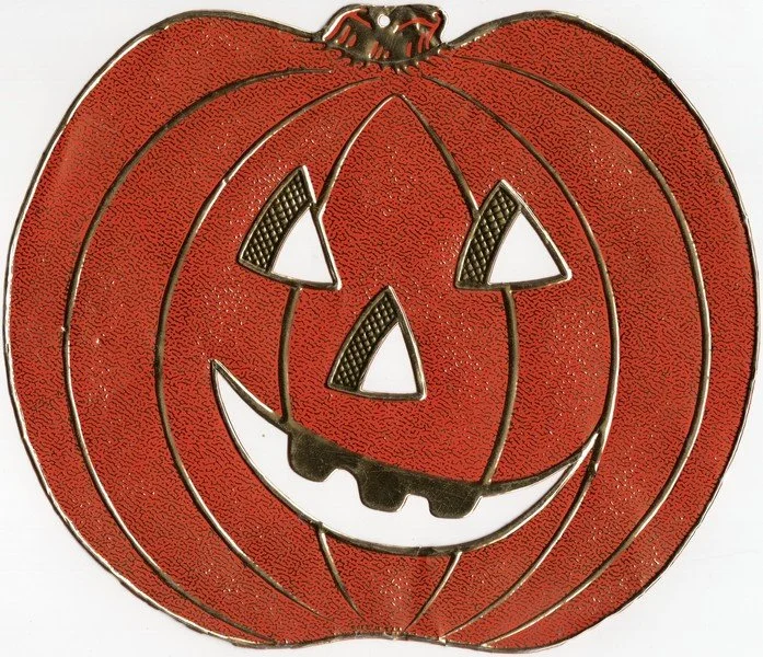 This foil JOL was produced by Happy Holiday during the 1950s. It measures ~7.75” high by ~9” across.