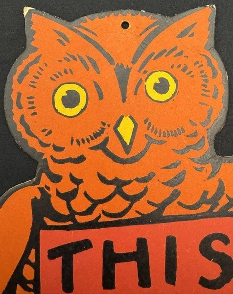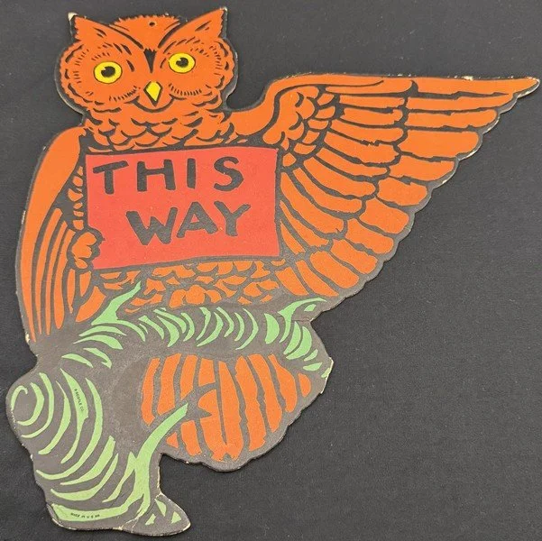 2625 1948 Beistle Owl This Way Party Sign Diecut
