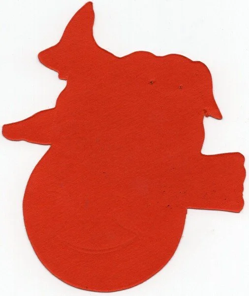 This small, non-embossed diecut of a broomed witch was produced by Beistle during the early 1920s. It measures ~4.25” high by ~3.75” across. This diecut has a vivid and rich coloration. There are no bends and only two pinholes.