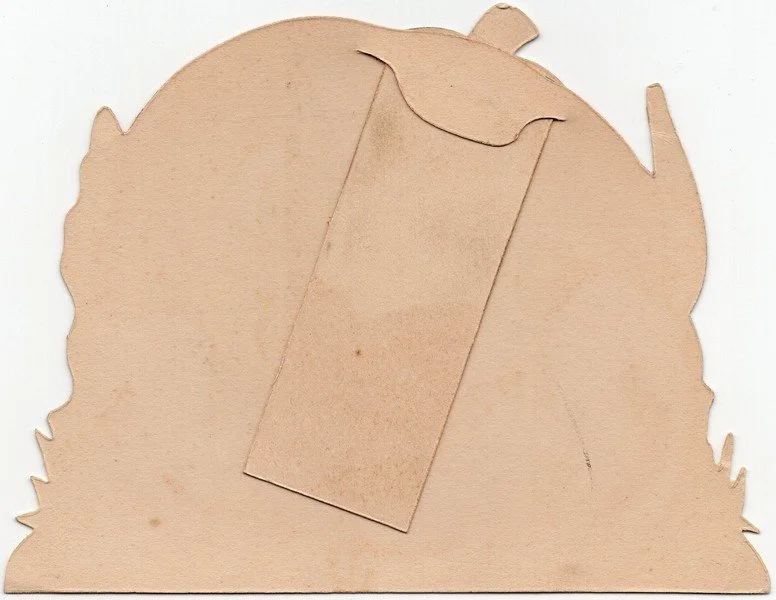 Gibson produced this mammoth invitation with a mechanical feature during the 1920s. The top of the JOL pulls out of the main body to reveal the unused invitation writing area. The invite measures ~4” high by ~5.25” across! There is minor discoloration along the bottom.
