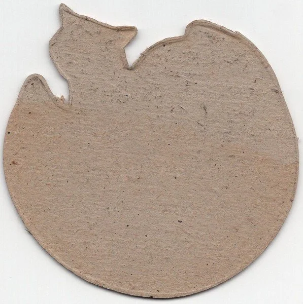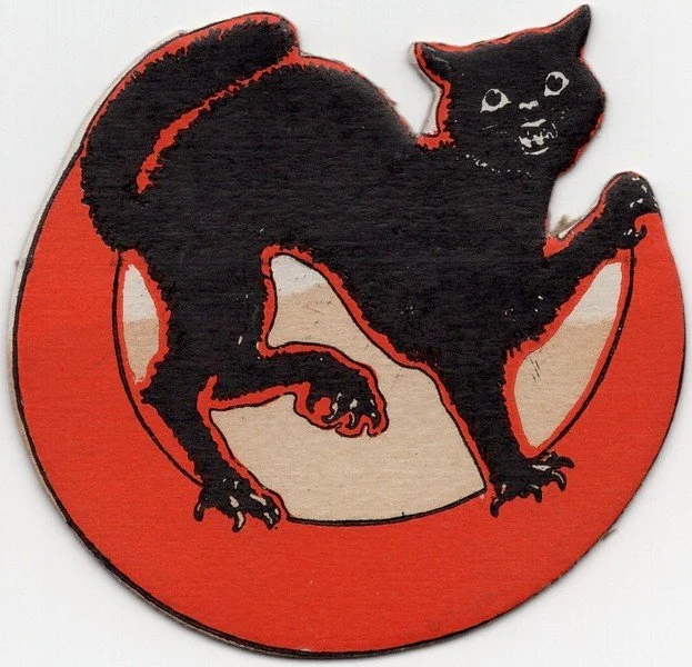 Beistle produced a set of six rocker favor designs. This is the black cat. The rockers were designed so that the bottom could be flared out enabling it to stand.