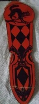 The pickings have been slim on eBay overall, so I was pleasantly surprised to see this exceedingly rare Beistle honeycomb fan up for auction. I have seen this fan only 3-4 times in nearly 30 years. The crease seen near the bottom is a result of the fan being used, unavoidable based on how it was designed. This is an early Beistle item. They made two iterations, one with a black honeycomb interior and one in orange, like this one. Both are valued equally. It has been a long while since one of these has surfaced, so it will be exciting to see what it fetches. Guide value is $450.