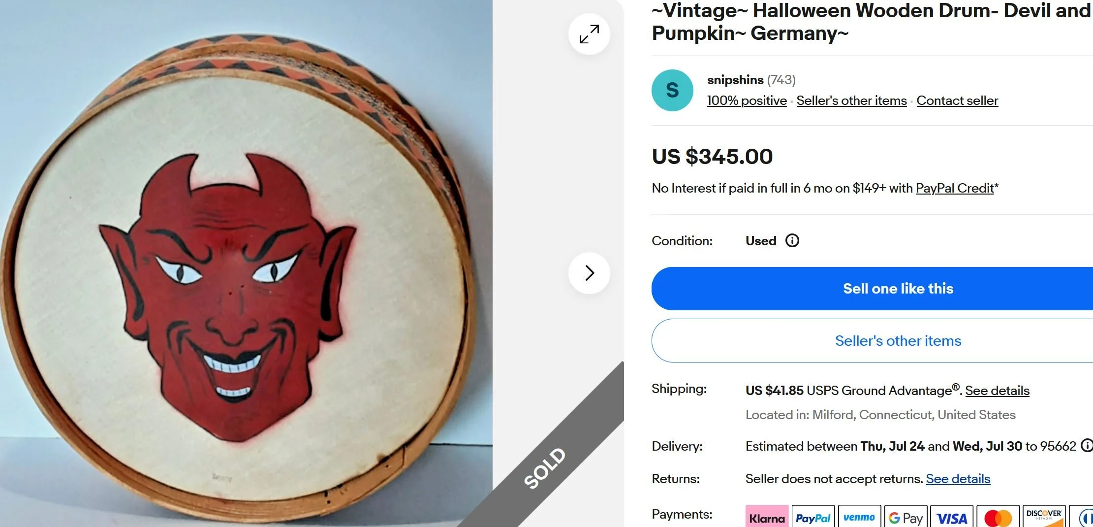 I doubt this is a truly vintage item. The rim may be vintage but the skins with the images are inconsistent with any other such thing I have seen. The buyer paid $300, so if it is a married item (old rims merged with new skins), the money was ill-spent.