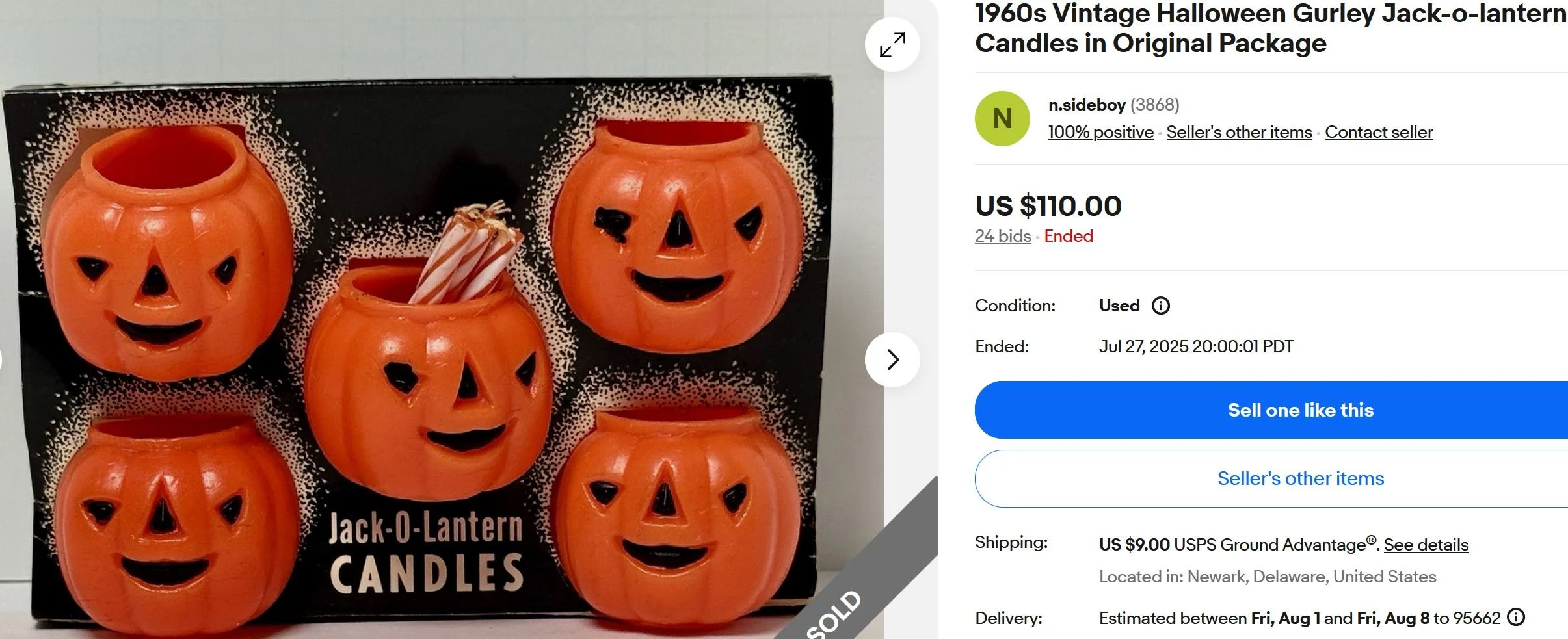 09/01 Update: Another one sold from the same seller today for $474.99.