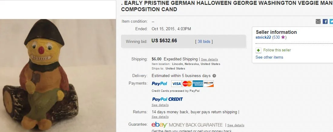 Looking at the results stnick22 received for their candy container offerings, I marvel at the strong prices fetched across the board. This serene little guy was a candidate for inclusion into the collection, but I was distracted with other activities and forgot to bid. That was certainly my loss.