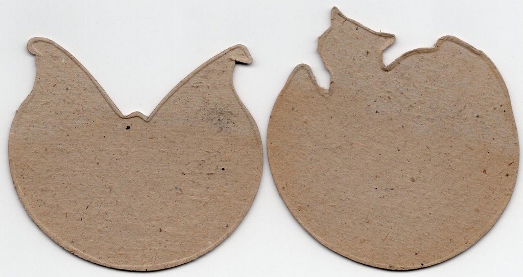 These two vintage Halloween "rocker favors" were produced by Beistle during the 1930-31 seasons. The full set consisted of six designs. Two of these are being offered here as one lot - the flying bat and the cat. Each measures ~3.25" high by ~3.5" across. The bottoms flare out, enabling the rockers to stand. These would have been used as place cards at those long-ago parties.